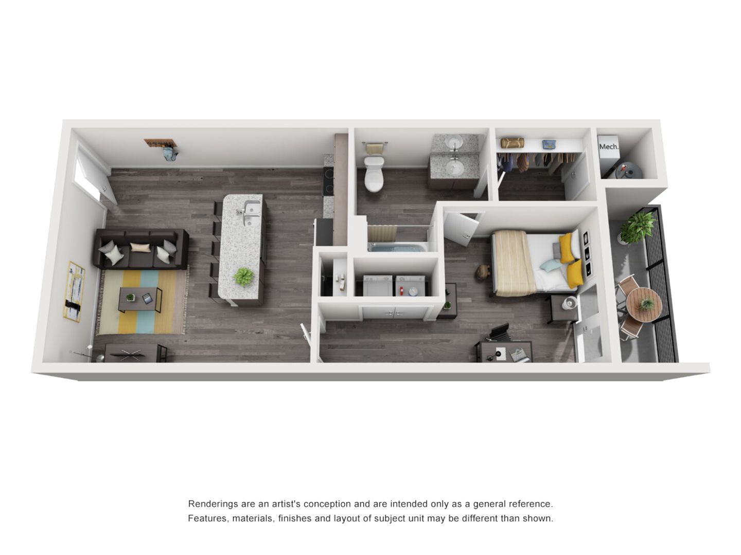 These one bedroom units offers a modern design and a host of amenities included in the rent price: